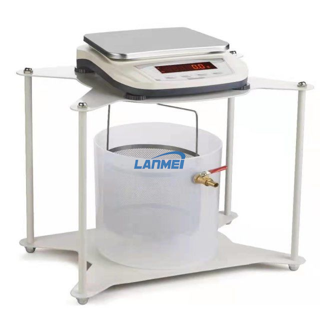 Bestehend aus einem für den elektronischen Gleichgewicht stehenden robusten Rahmen aus einem Zweck. Der untere Teil des Rahmens enthält eine sich bewegende Plattform, die den Wassertank trägt, sodass die Testproben sowohl in Luft als auch in Wasser gewogen werden können.